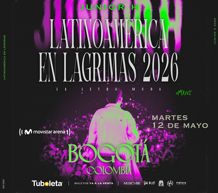 El 12 de mayo, el Movistar Arena de Bogotá será el escenario para la presentación de Junior H, uno de los máximos exponentes de los corridos tumbados y del regional mexicano urbano. Originario de Guanajuato, México, inició su carrera de forma independiente, hasta convertirse en una voz clave de su generación y alcanzó un crecimiento orgánico que lo llevó a posicionarse a nivel internacional; destacándose por letras introspectivas que exploran el amor, el desamor y la cara emocional del éxito. Acumulando miles de millones de reproducciones en plataformas digitales y una discografía que ha marcado el rumbo del género. Con álbumes clave como Atrapado en un Sueño y $ad Boy, y colaboraciones con Natanael Cano, Peso Pluma, Luis R Conriquez, Ovi y Gabito Ballesteros, Junior H ha marcado a toda una